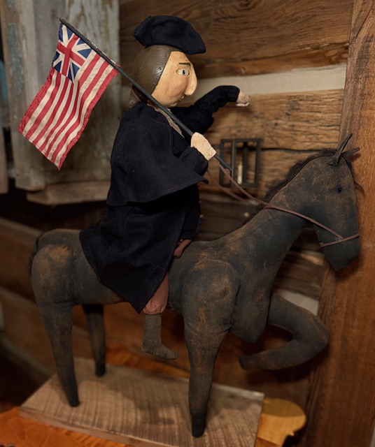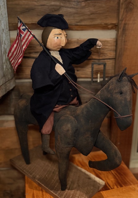 This is Paul Revere riding his horse carrying a lantern during his famous ride. He is a large piece appx 21" x 24"